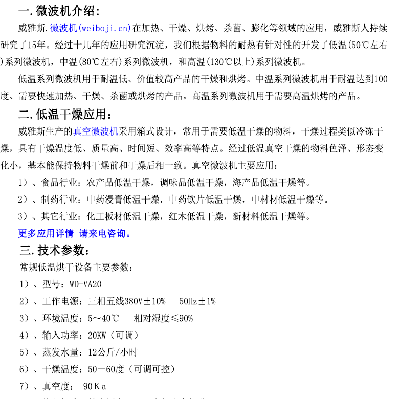 低温烘干设备主要应用: 1)、食品行业:农产品低温干燥,调味品低温干燥,海产品低温干燥等。 2)、制药行业:中药浸膏低温干燥,中药饮片低温干燥,中材材低温干燥等。 3)、其它行业:化工板材低温干燥,红木低温干燥,新材料低温干燥等。 更多应用详情 请来电咨询。宋经理:158-1718-8338