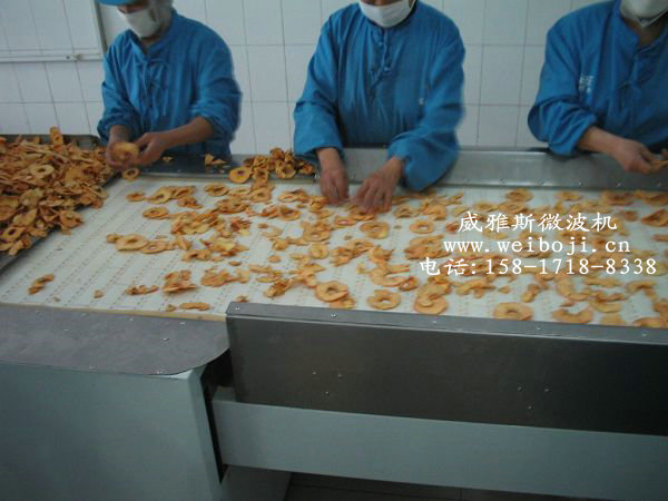三、设备操作简便、节省人工。微波功率和传送带速度均可无级调节,不存在热惯性,可即开即停,简单易控。改善生产环境。微波设备无余热辐射、无粉尘、无噪音、无污染,易于实现食品卫生的检测标准。设备为半自动化生产,台设备最多需要两个员工。